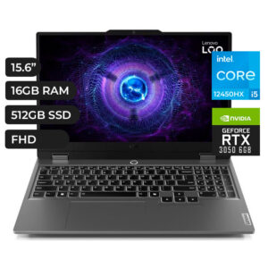 LAPTOP LOQ 15IAX9 INTEL CORE I5 12450HX, RAM 8GB DDR5, SSD 512GB, NVIDIA RTX 3050 DE 6GB, PANTALLA 15.6P FULL HD, IPS 144Hz, 4 CELDAS, FREEDOS, COLOR LUNA GREY, STAND MILITAR.
