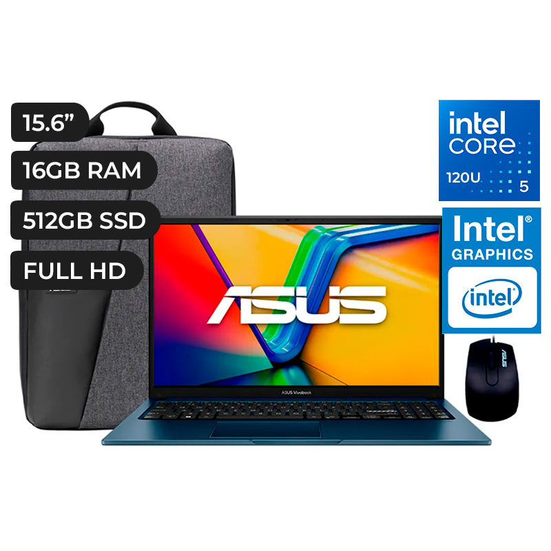 LAPTOP, ASUS VIVOBOOK 15, X1504VA CORE 5 120U 16GB DDR5 512GB PCIe4.0 15.6P MOCHI+MOUSE