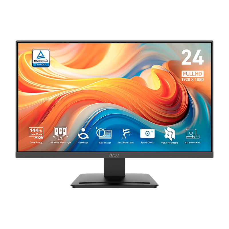 MONITOR GAMER MSI PRO MP243L E14, 23.8″ FULL HD, IPS, 144HZ, 1MS, AMD RADEON FREESYNC, PARLANTES, HDMI, VGA, COLOR NEGRO