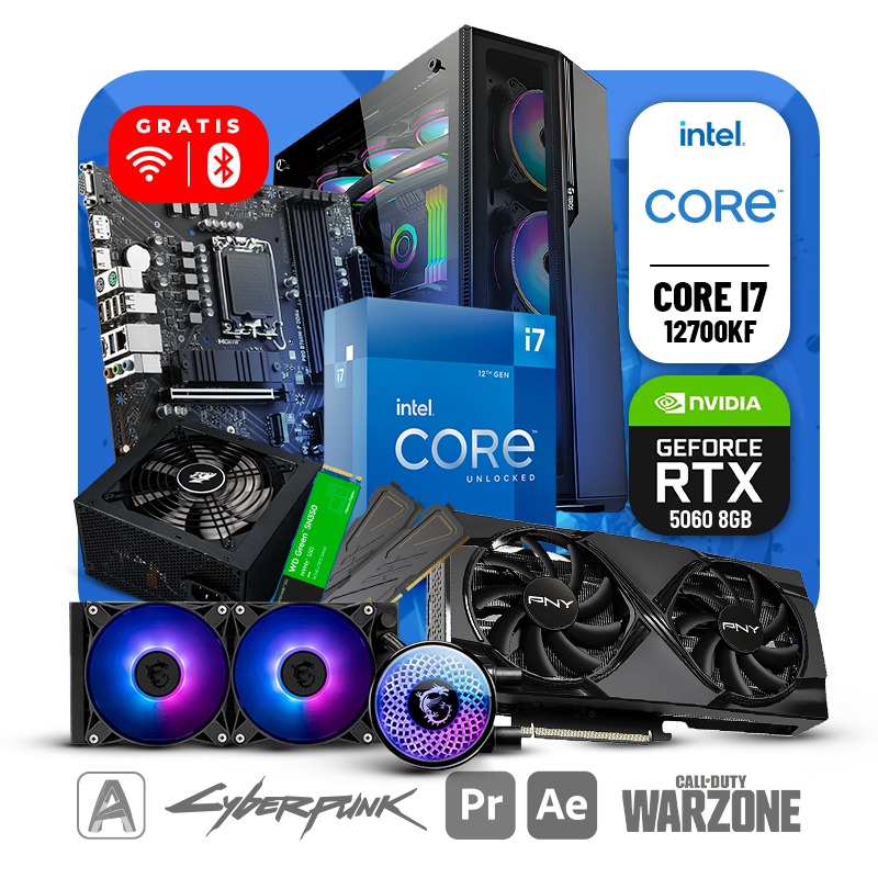PC PROFESIONAL PARA JUEGOS Y EDICIÓN INTEL i7 12700KF, RAM 32GB DUAL DDR4 3200MHZ, SSD 1TB Green Nvme, RTX 5060 8GB GDDR7