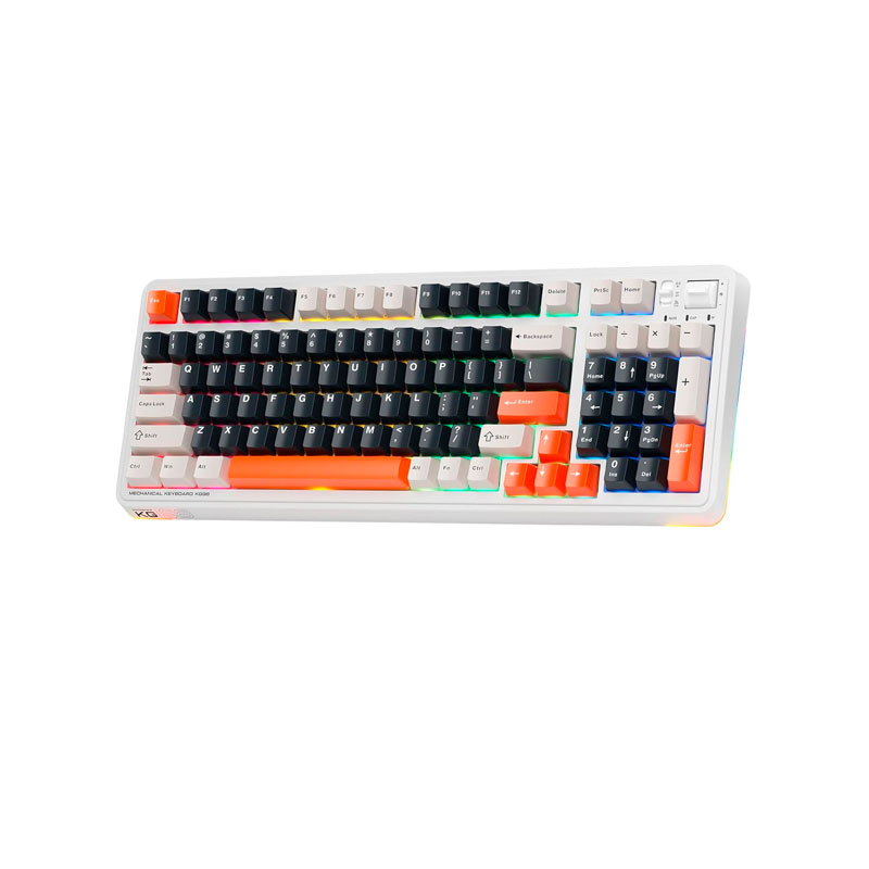 TECLADO KG98 NARANJA INALÁMBRICO TRIPLE CONEXIÓN(2.4GHz USB, BLUETOOTH, CABLEADO) , SWITCH AZUL, TAMAÑO 98%